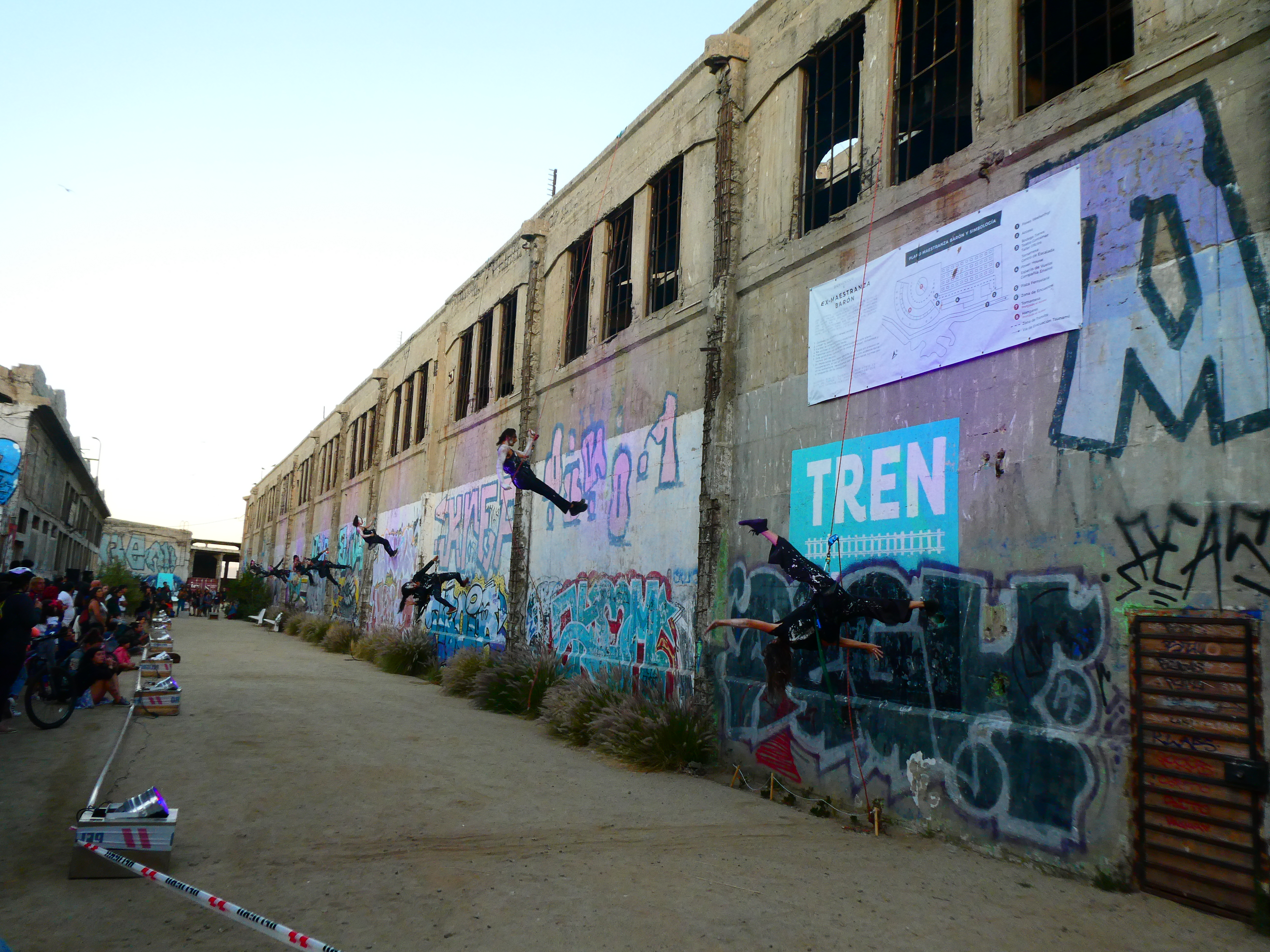 This is the case of a large building on the coast where trains used to be parked and repaired. It’s now the home of an indoor rock climbing wall, among others. Outdoor theatre and other art performances are organised there. Cement walls covered in tags, palette wood benches and up-cycle creativity; if that’s your kind of vibes, you’ll love the place! You’ll find it on your favourite online map by looking up “Tornamesa“.